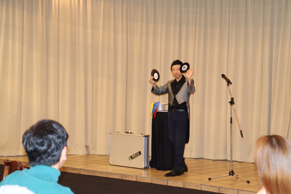 心温まる表彰式につづいて、お楽しみの懇親会。今年はゲストにマジシャンをお招きしてマジックショーを開催。魅惑のマジックで会場には笑顔があふれた。